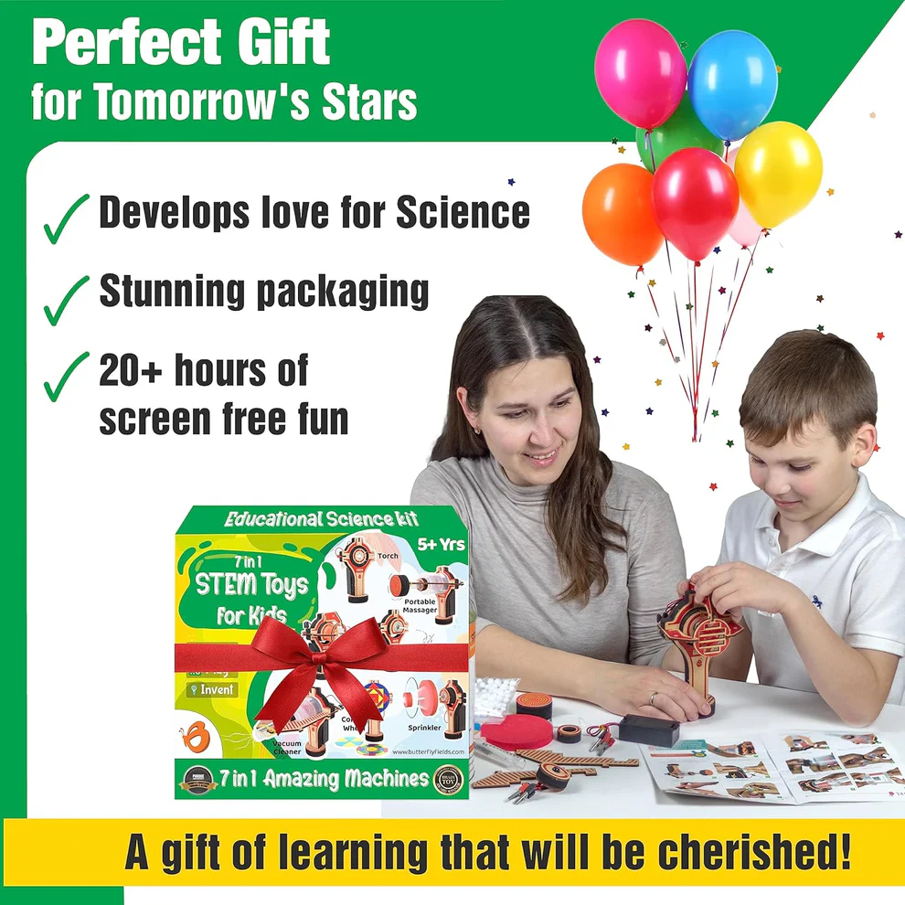 Whether for a birthday, Christmas, holiday, or a surprise gift, this STEM kit is the perfect way to replace screen time with meaningful hands-on play. Give your child the joy of building, experimenting, and learning — all while creating memories that last.